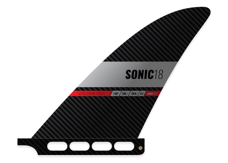 The Sonic Black Project fin is for SUP racing and downwind fin designed to maximize board maneuverability and speed. Ideal for advanced and professional paddlers looking to enhance their flow on downwinders, this small fin utilizes a surfing-inspired curved outline with a narrow cord and thinner foil to help paddlers ride and connect swells at speed. Ideally suited to downwind conditions, this fin also performs well in technical surf races, shallow water and rivers with a strong flow and debris. In situations when the fastest racing line is not a straight line, the Sonic enables you to seek out and connect the fastest bumps, waves and sections of flowing water.