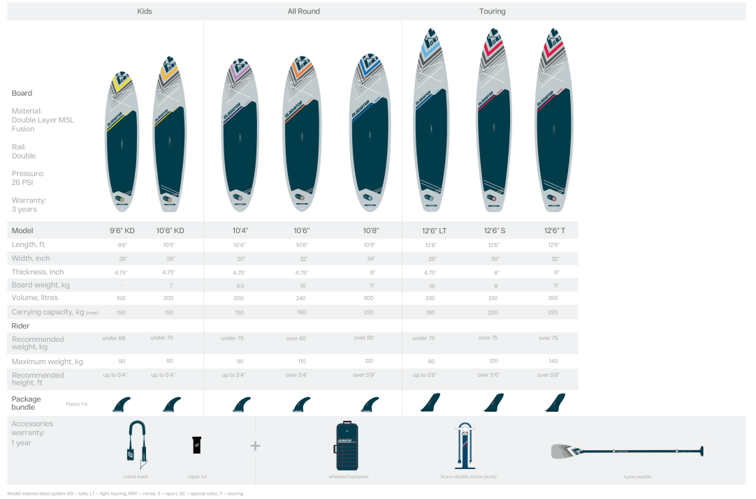 3 Years Warranty: Gladiator is an innovative brand, building high-quality paddleboards, but without a high price-tag, Using fusion double laminated and weave technology alongside triple rail edge construction means these boards are light & strong. With premium glueing technology that is 26 psi rated (even though 18/20 psi is perfect) the confidence in this high PSI means not only a very rigid board but also one that is very very strong.