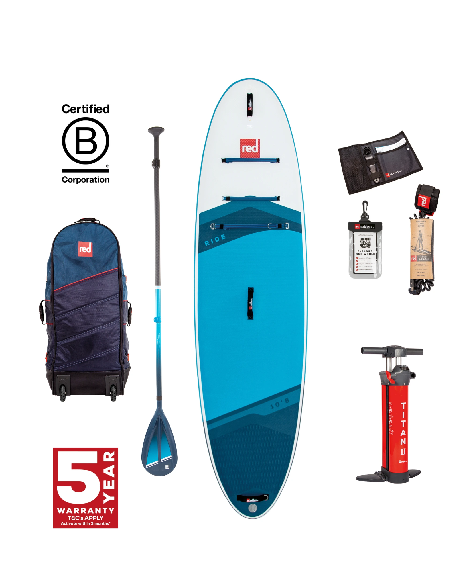 With soft-grip handles, adjustable cargo system and high-traction deckpad, the 10'8" Ride comes complete with everything you need to get started in our All-Terrain Backpack – including coiled leash, Titan II pump and choice of paddle.