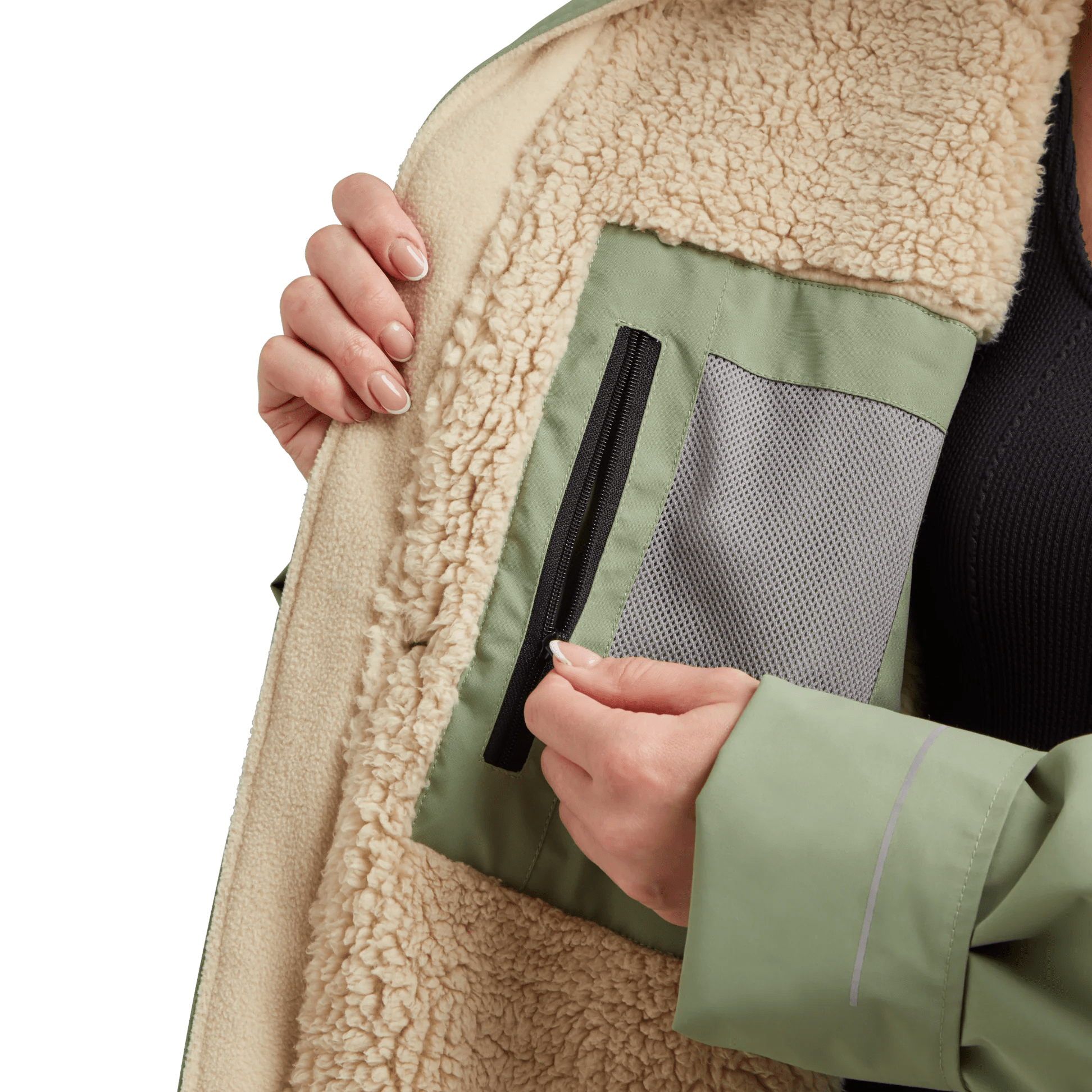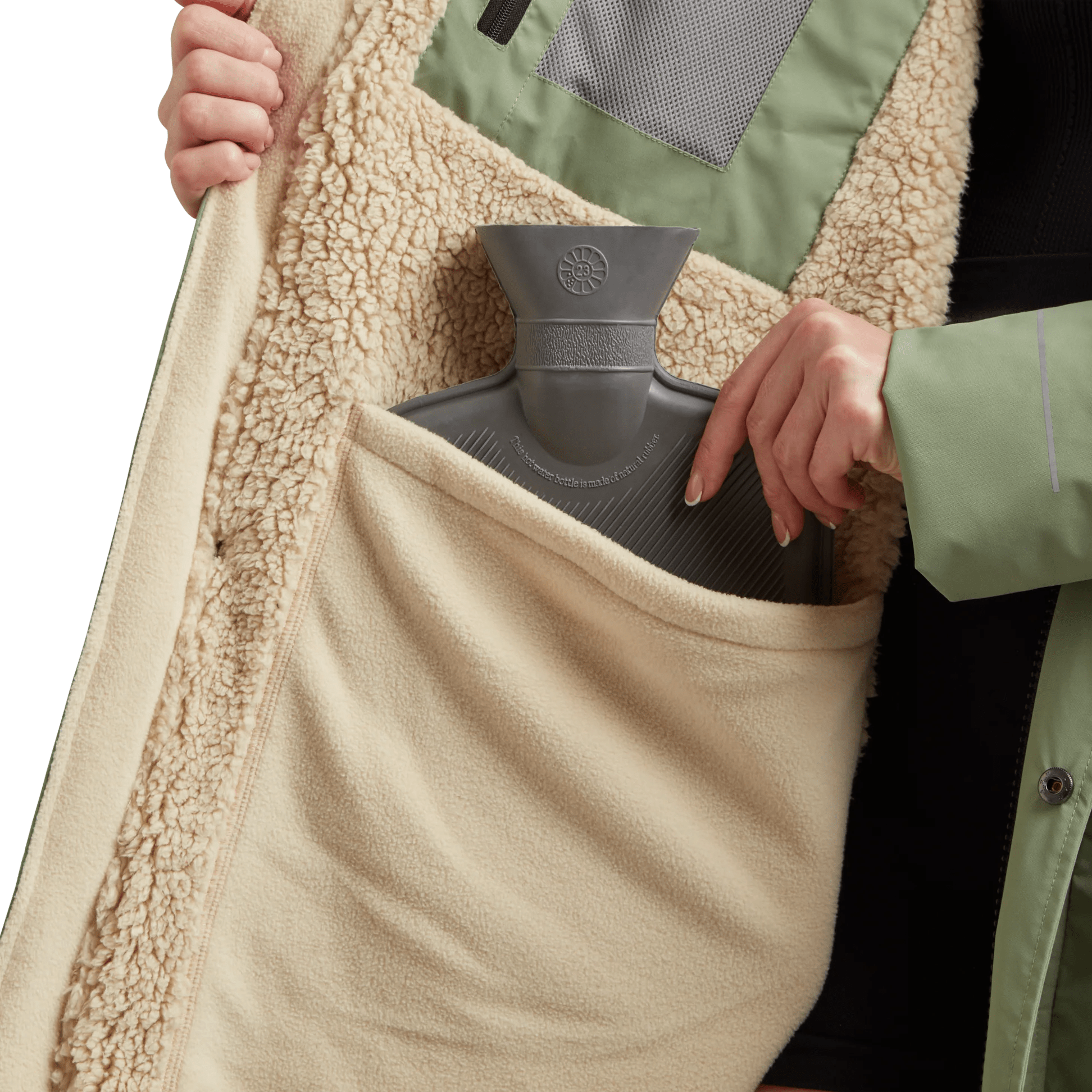 Sherpa Fleece Lining – soft, cosy, and quick drying.