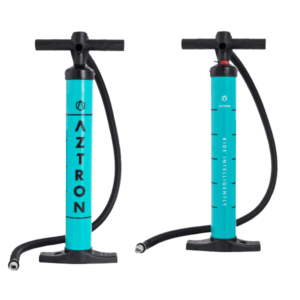 “Pump easy and twice as fast!” The Aztron Double Action pump inflates your board faster and easier with continuous pumping cycles in both downward and upward action. With a simple switch, the double action can easily switch to the single action mode for easy inflation to the last phase of the inflation.