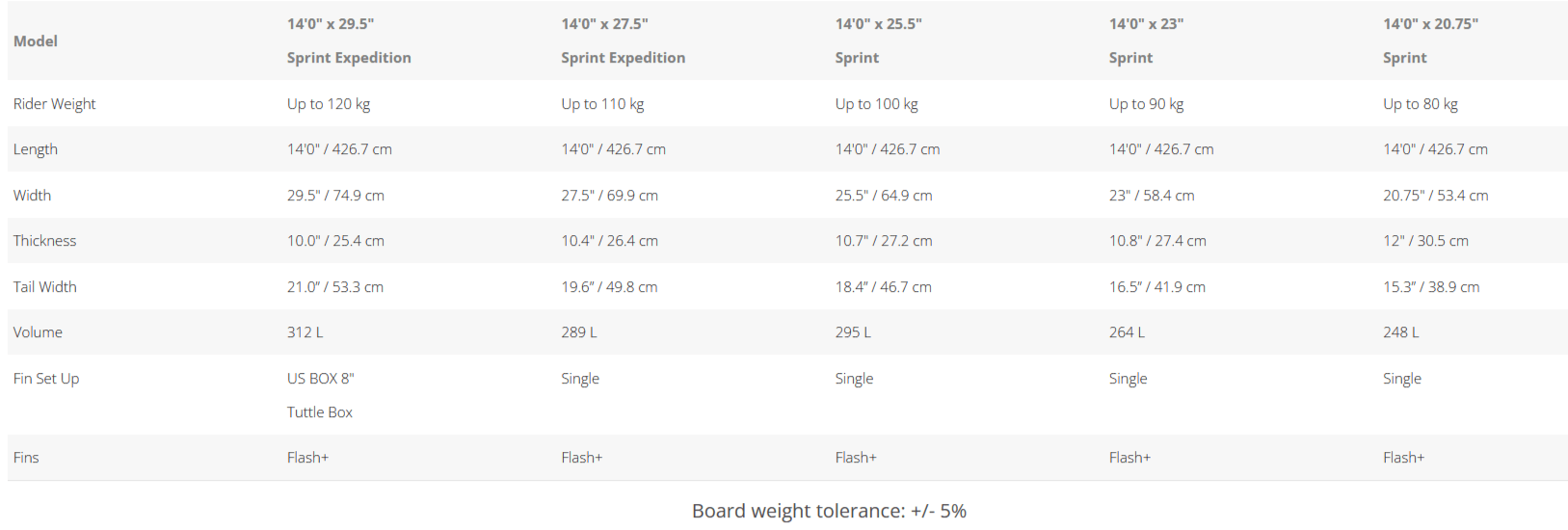 | Model | 14'0" x 29.5" Sprint Expedition |