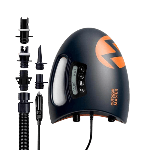 The Outdoor master Shark II can inflate 3 boards without stopping too 20psi and also has a deflate option too. The paddleboard pump charges via a 12v DC power connector and is easily plugged into your car, making it convenient for outdoor use.