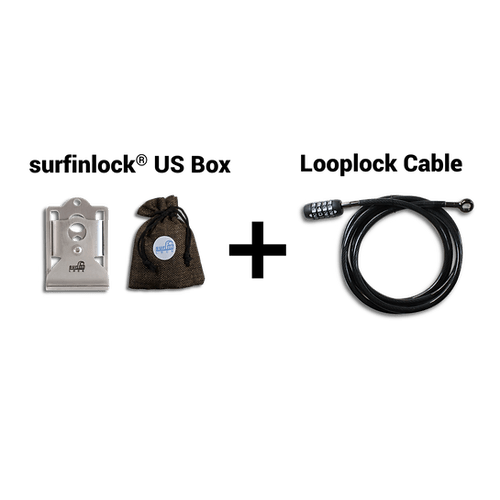 The Looplock cable is a versatile locking solution that pairs perfectly with your surfinlock. Its compact size and number dial make it a convenient travel companion that eliminates the need for carrying keys. The unique Looplock design allows you to lock multiple boards together, making it superior to standard double-loop cables. The cable can be looped around a fixing point, and you can then secure your board or several boards one after another. It works with all our surfinlocks and is also suitable for protecting other valuable equipment such as bicycle trailers, camping chairs, or any gear that needs to be secured.