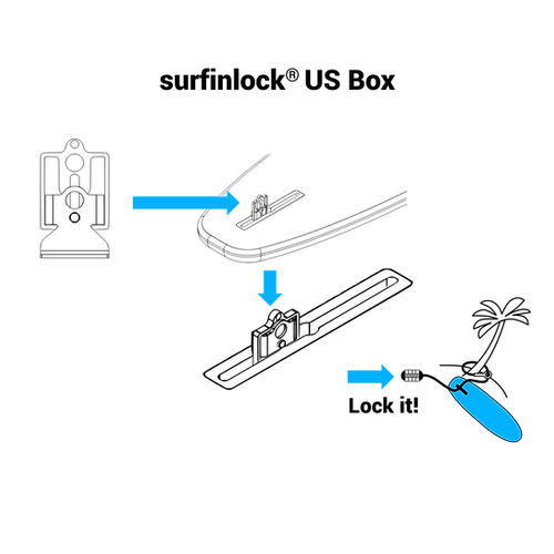 Introducing the surfinlock US box, designed for use with all boards equipped with a US Box fin system, including longboards, single fin boards, stand-up paddleboards, windsurf boards, and foil boards. This surfinlock is incredibly easy to use - simply insert it into the US fin box and slide the thicker part down to lock it in place. When used with our Looplock cable or any other lock and cable, it cannot be removed. Its compact size allows you to leave your fin in on most boards while locking your board on the roof of your car or anywhere else you need to secure it. Crafted from high-quality stainless steel, this surfinlock is built to last, keeping your board safe and secure.