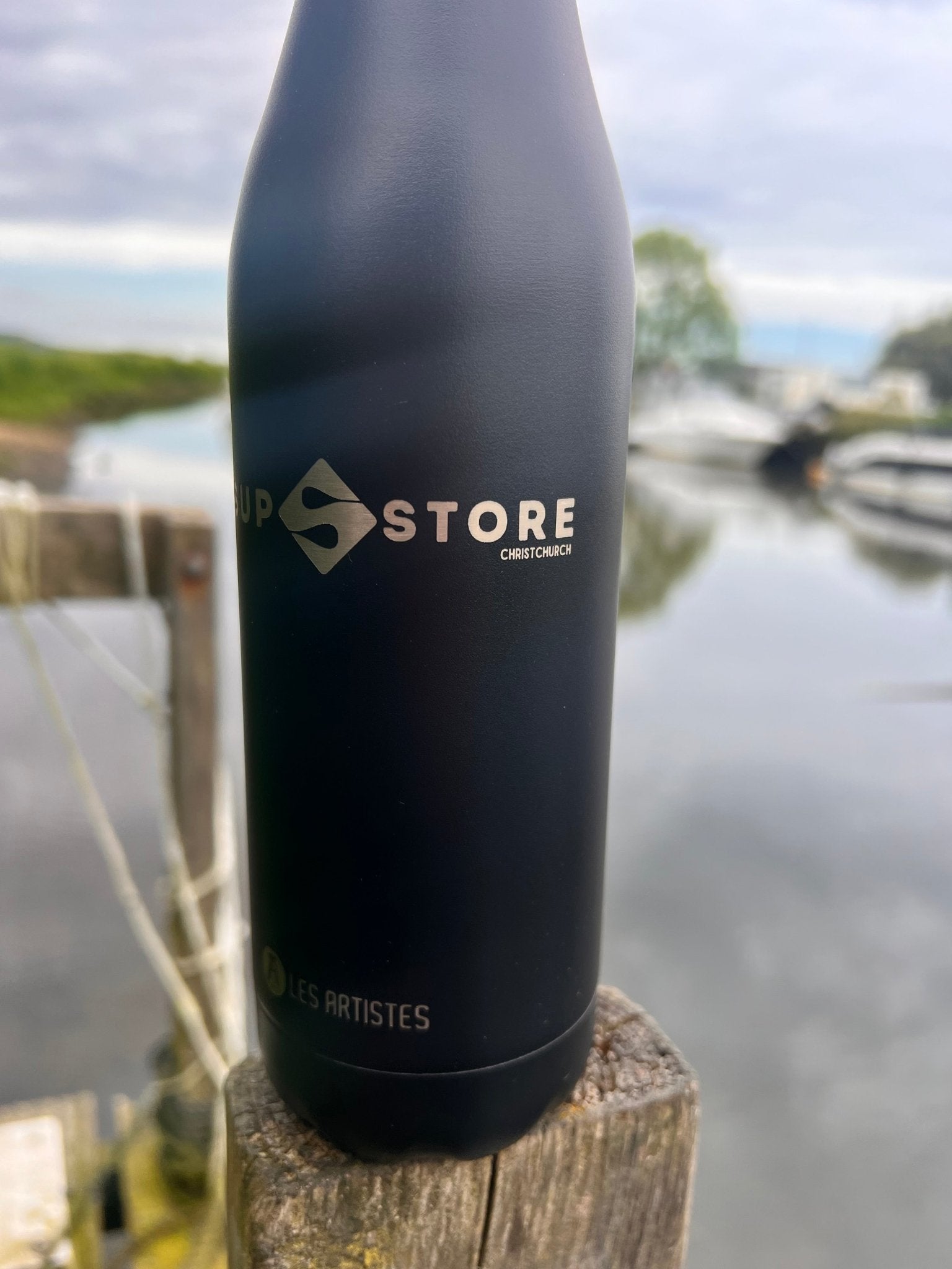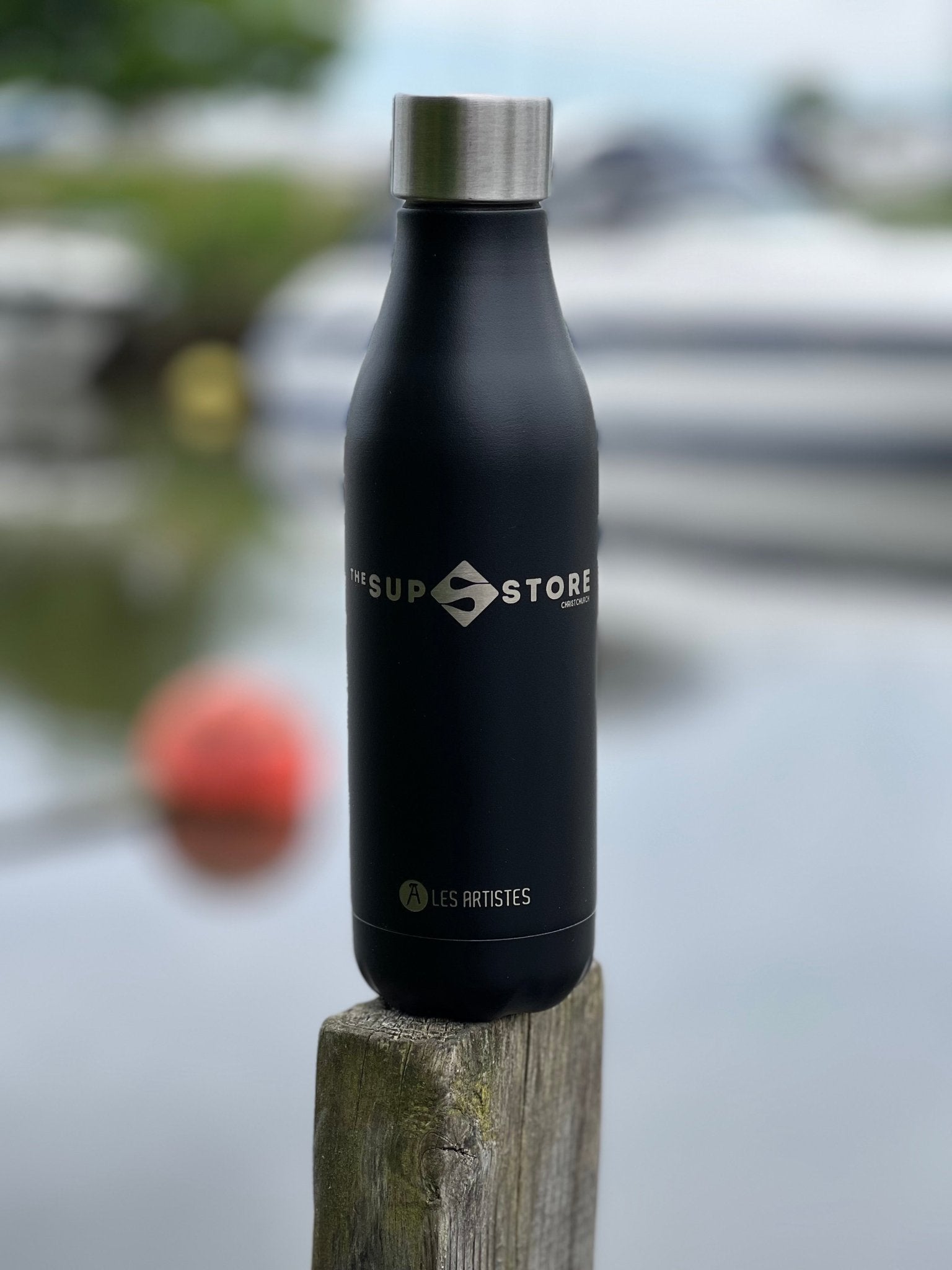 The SUP Store beautifully engraved black/silver 500ml LES Artistes drinks bottle.